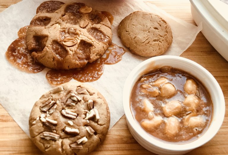I en liten ildfast skål som du smører legger du en tykk cookie, legg over noen