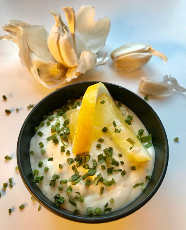 Ha alt, bortsett fra gressløken, i en blender og kjør til en jevn og fin saus.