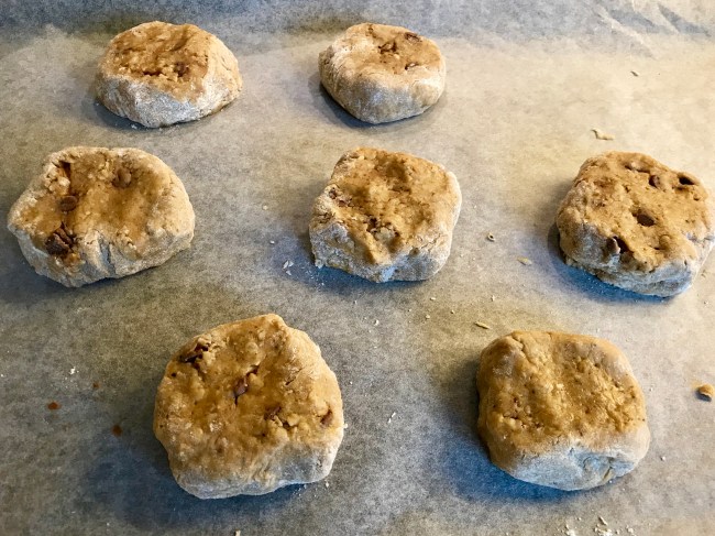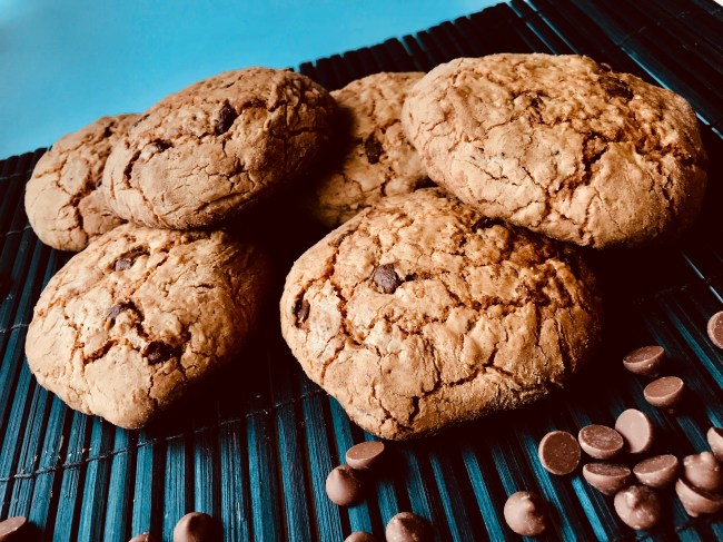 Crunchy havrecookies eller havrekjeks som er myke inni – med melkesjokolade.