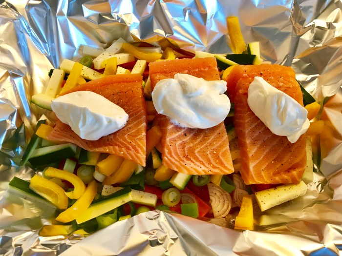 Lukk aluminiumsfolien og sett midt i ovnen på 200 grader i 20 minutter.