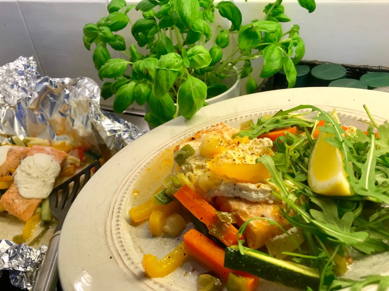 Lukk aluminiumsfolien og sett midt i ovnen på 200 grader i 20 minutter.