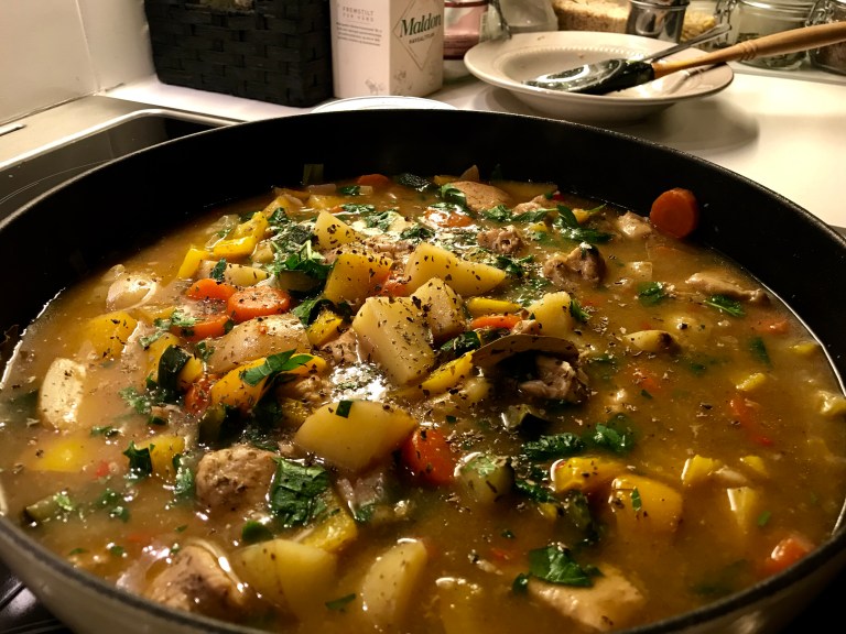 Så har du i resten av ingrediensene og lar det koke i 20 minutter, til potetene er møre.