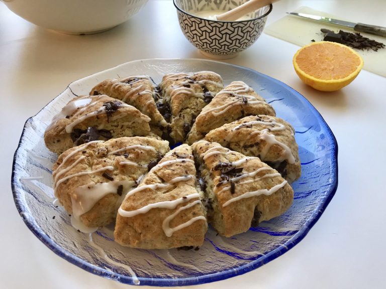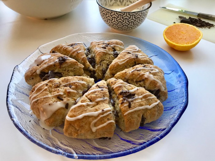 Nydelige scones med masse smak av appelsin og sjokolade.