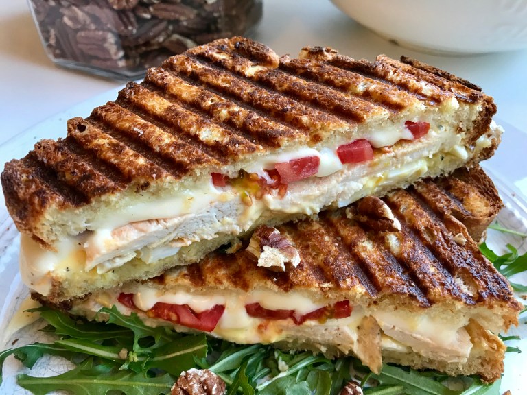Ny variant grillet sandwich med ferdig stekt kyllingfilèt og potetbrød.