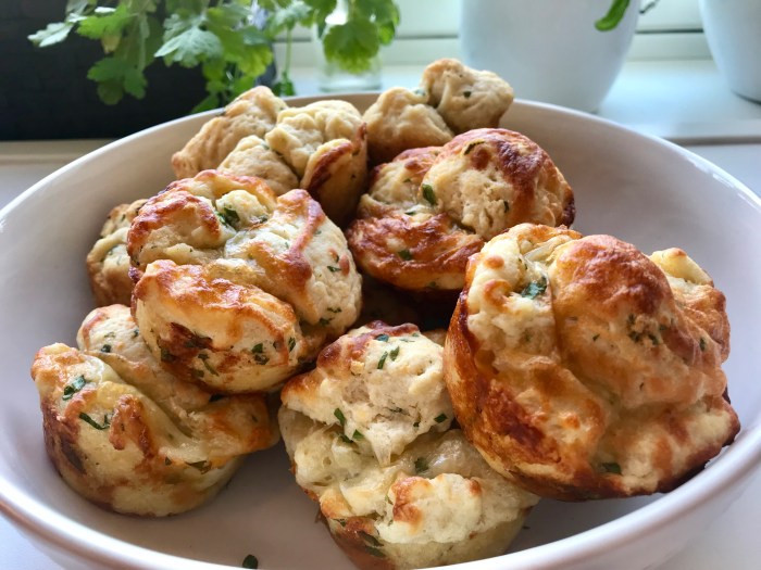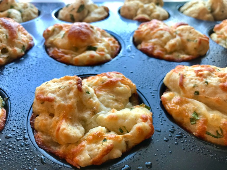 Disse gode, saftige og myke hvitløksbrødene bakes i muffinsform.