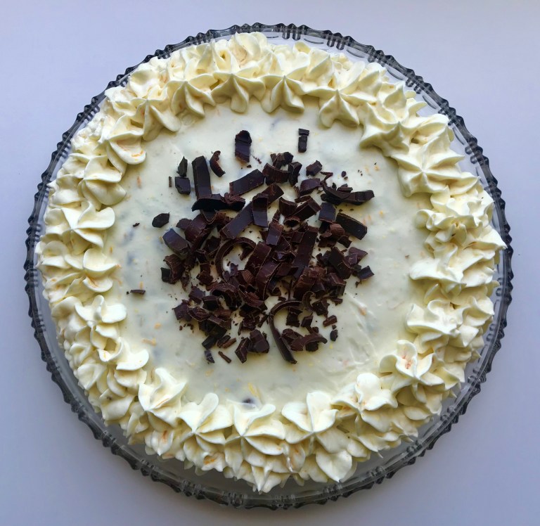 Pisk dette sammen så det blir kremete. Bres over avkjølt kake.