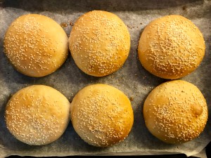 Trykk de litt flatere og dekk til igjen med plastfolie og hev en gang til i 45 minutter.