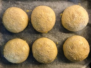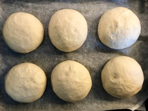 Ha deigen over på kjøkkenbenken og del i 6 emner som rulles til boller.