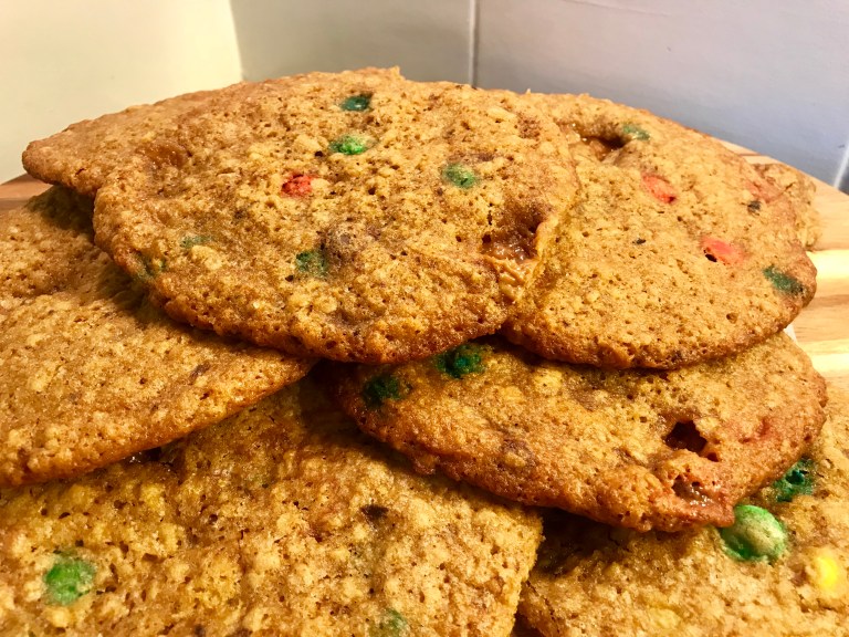Supergode cookies som er myke og seige og litt crunchy på kantene.