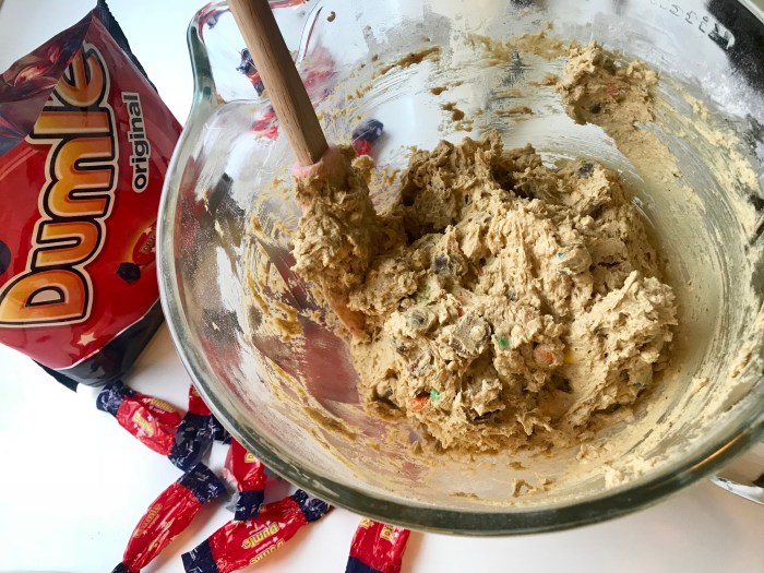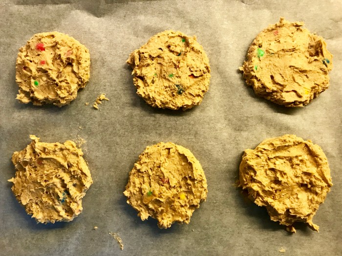 Ha litt avstand mellom cookiesene for de siger noe ut under steking.