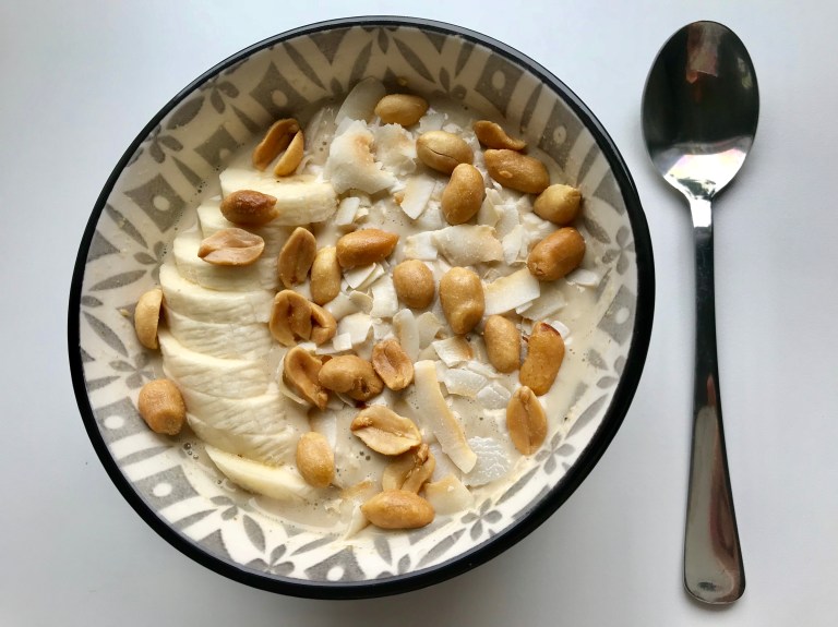 Om morningen har du over de siste kokosflakene, bananskiver og peanøtter.
