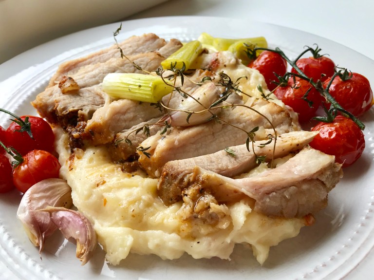 Jeg har brukt slow cooked pork belly og steker denne raskt i en gryte