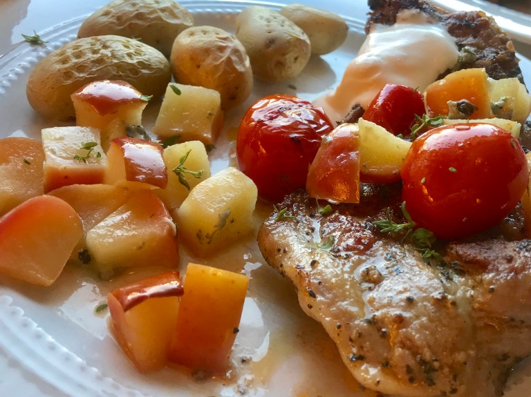 Legg tomatene sammen med kotelettene de siste 5 minuttene.