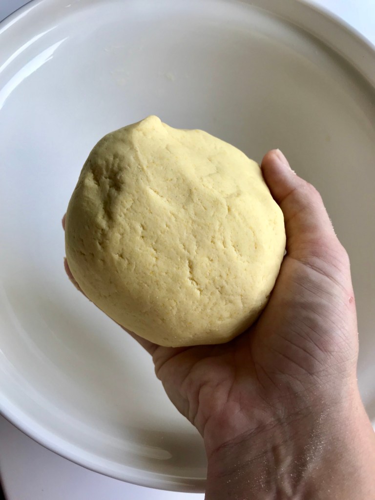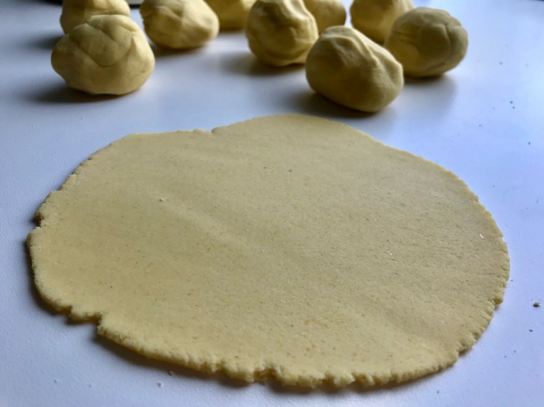 Hvetemelet hjelper til med å holde maismelet sammen så deigen