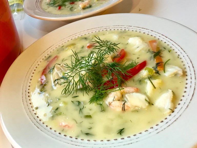 Servèr finhakket dill og sitronbåter ved siden. Gjerne også litt godt brød!
