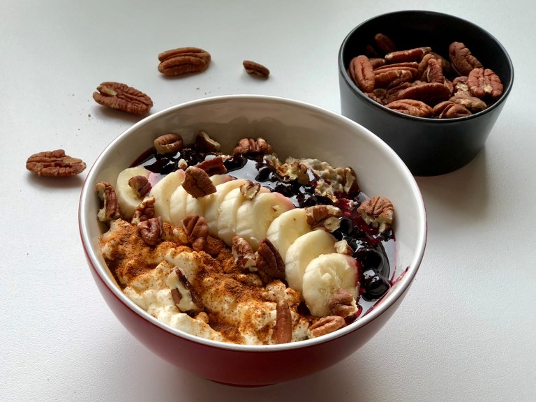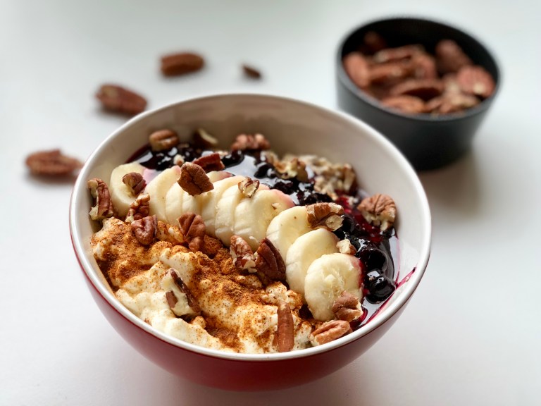 Servèr en hel frokost i et glass eller ha det over i en skål og legg på toppingen.