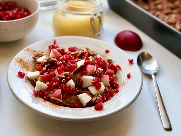 Så her får du en ny variant kjøleskapsgrøt med hjemmelaget eplemos med kanel,