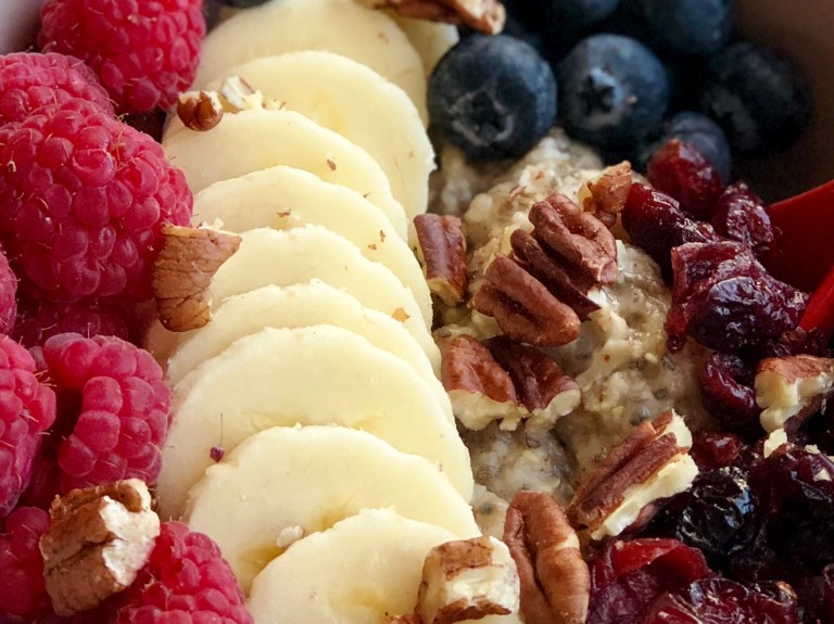 blåbær, bringebær, tranebær og hakkede pekannøtter.