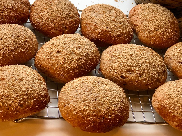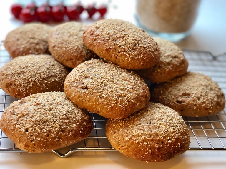 Pisk sammen ett egg med 1 ss vann og pensle over rundstykkene. Strø over havrekli.