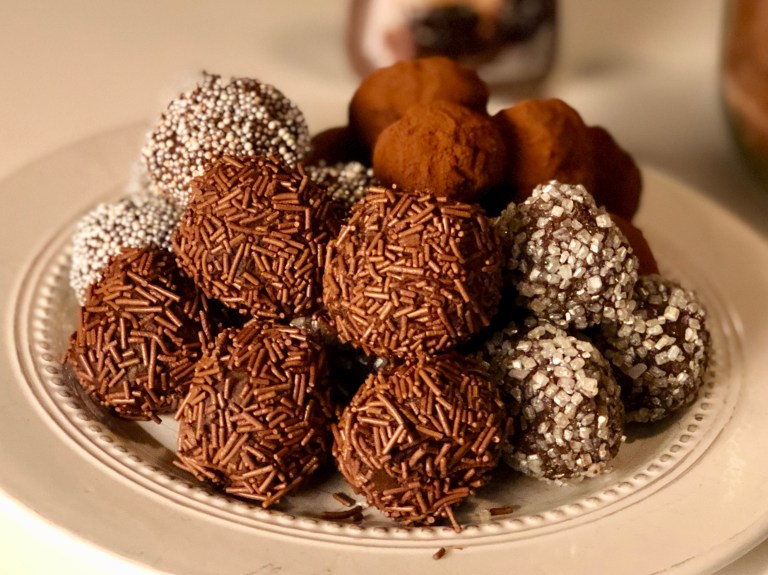 Kakaopulver og/eller annen strø til å rulle i.