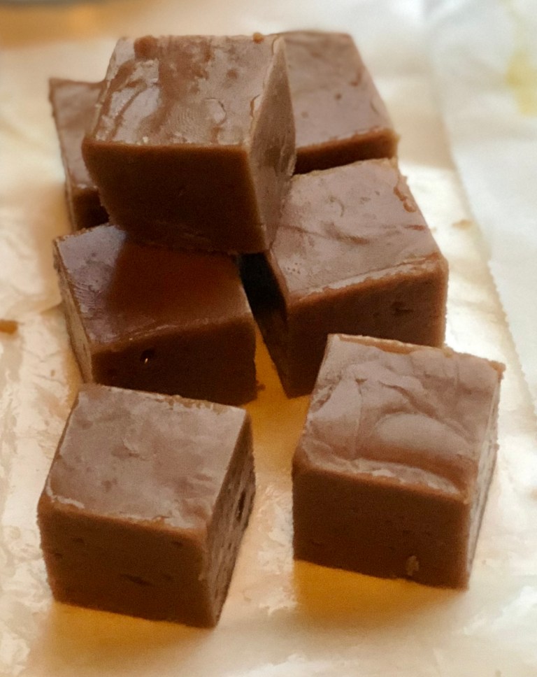 Så kan du dele den opp. Nå har du en nydelig myk fudge!