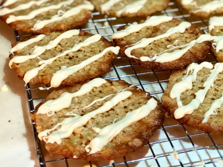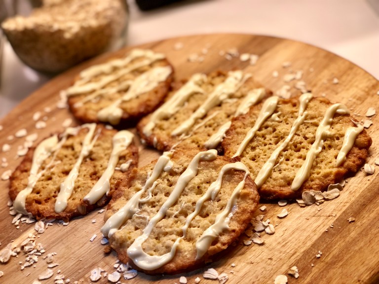 Hvit sjokolade på havreflarn smaker helt fantastisk!