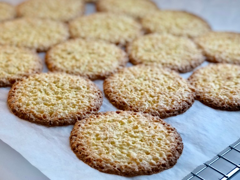 Stekes midt i ovnen på 200 grader i ca. 10 minutter. Avkjøles på rist.