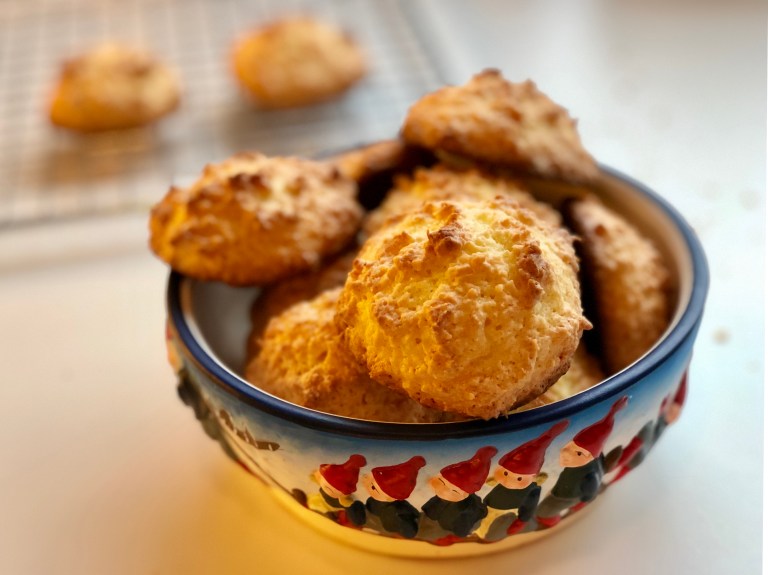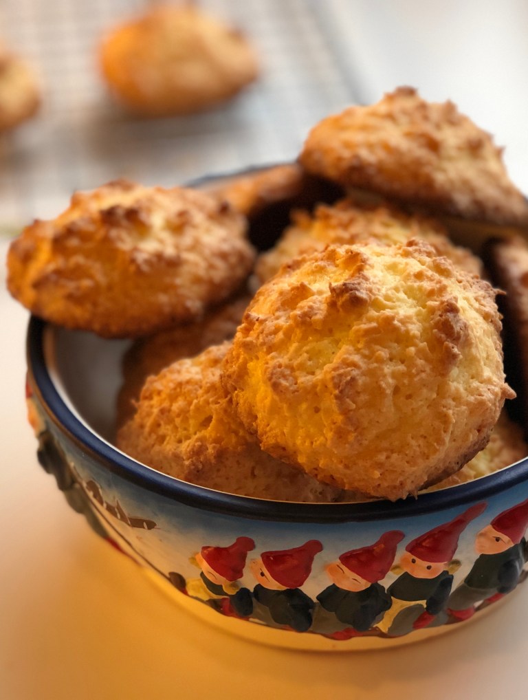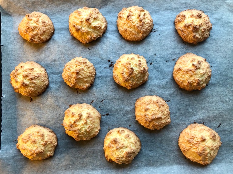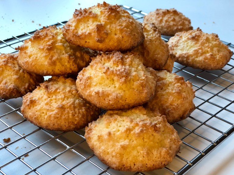 Kokosmakroner hører også julen til og disse er sprø utenpå og seige inni.