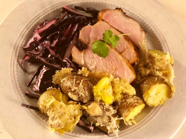 og helstekes i ovn ved lav temperatur. Et nydelig måltid!