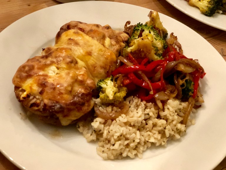Legg jarlsbergost på toppen og sett formen inn midt i ovnen i ca. 25 minutter.