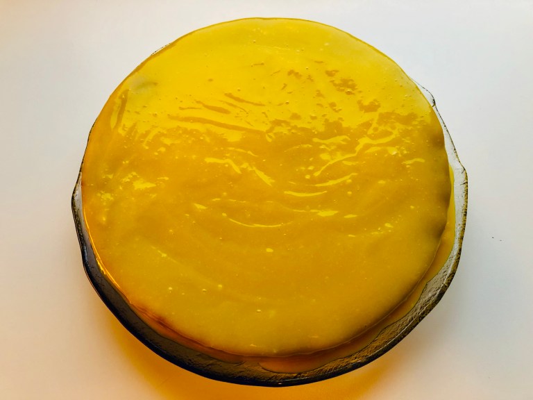 Den gule kremen kan helles over i en sprøytepose, settes kaldt til den stivner