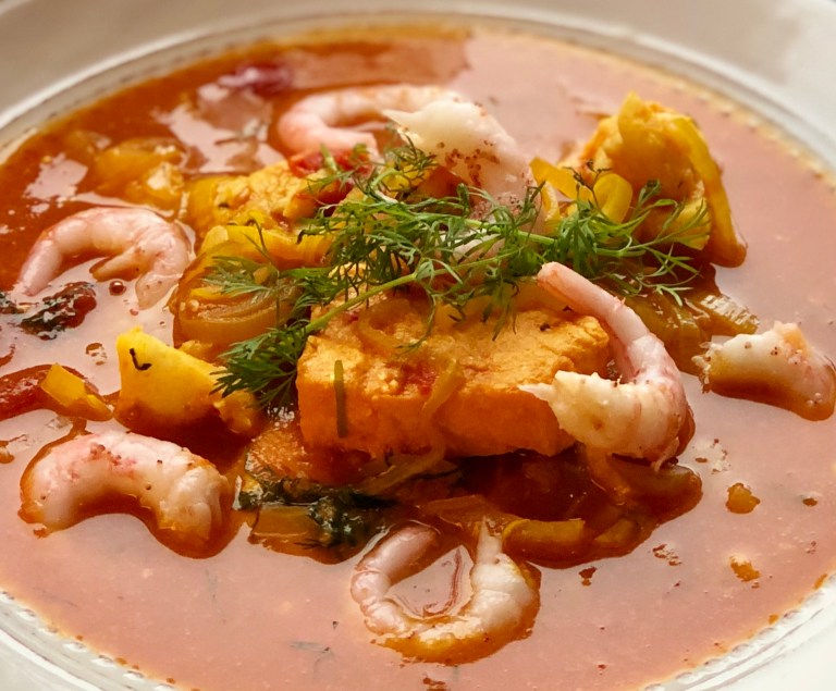 Bouillabaisse er en fransk fiskesuppe som lages med flere fiskeslag.