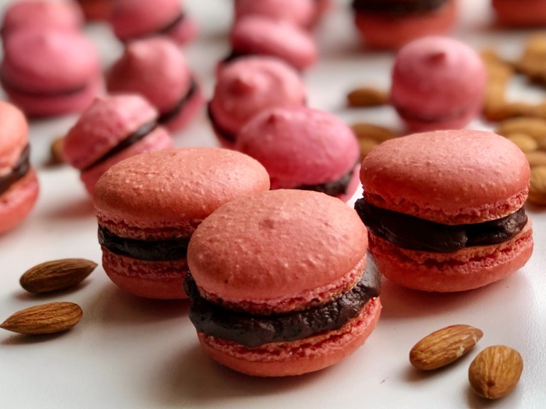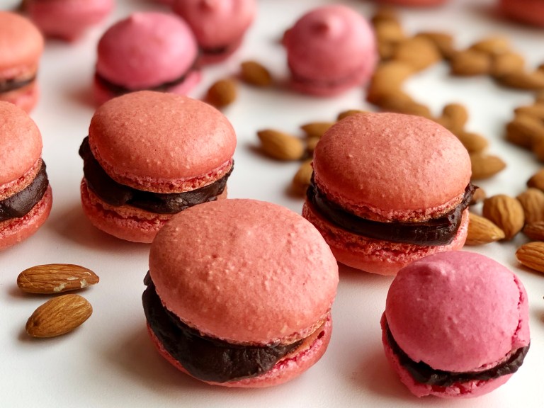 Til Valentine har jeg farget vaniljemakronene rosa og fyllt de