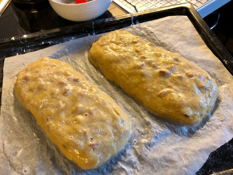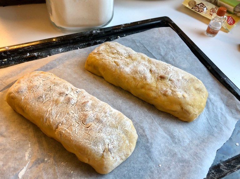Legg de over på en skjærefjøl og kutt stykker diagonalt på 1-2 cm tykkelse.