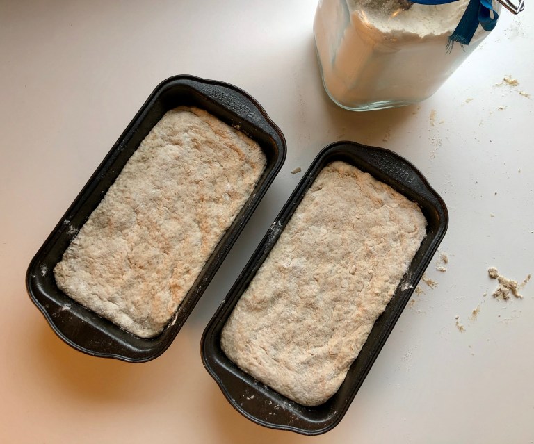 Sett brødene på nederste rille i stekeovnen på 200 grader.