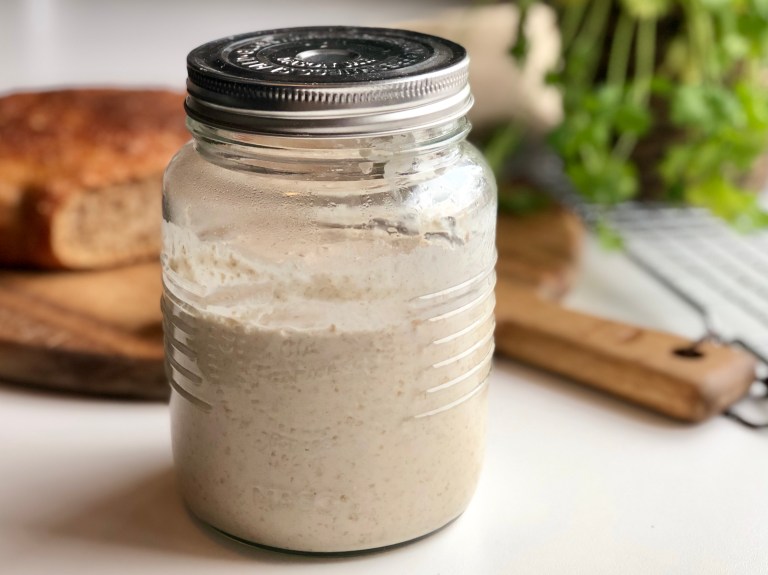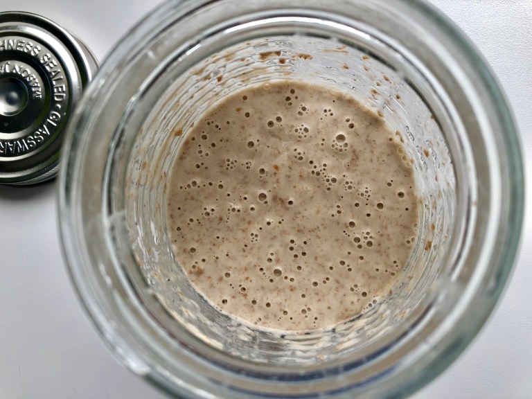 Trenger du 150 g starter til å bake med så tar du 30 g starter fra den du har i
