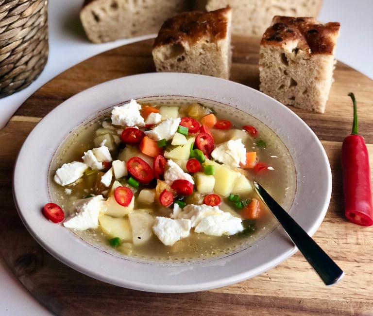 Bruker du kun det grønne på vårløken er denne suppen Lavfodmap!