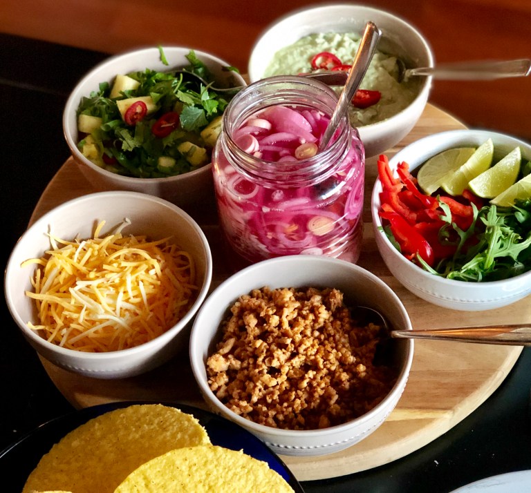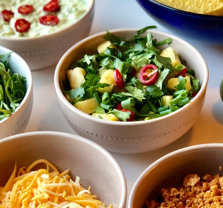 Tacos med hjemmelaget saftig og spicy ananas salsa.