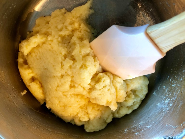 Avkjøles på rist før de fylles med vaniljekrem. Jeg fyller de fra siden.