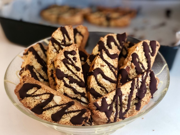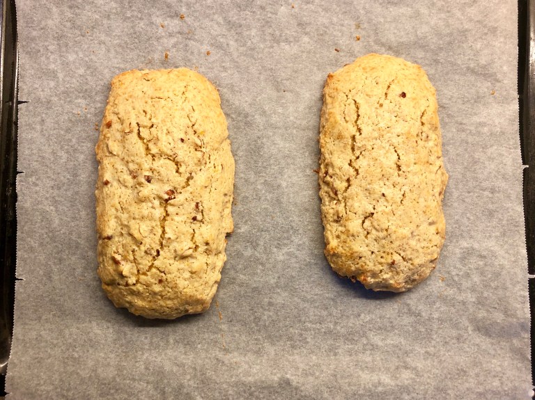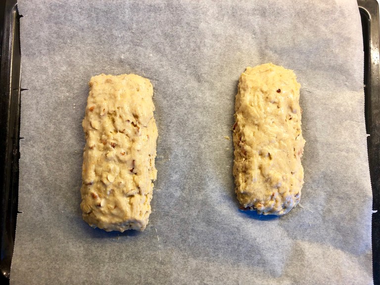 NB! Biscottiene er litt myke i midten med en gang de tas ut av ovnen