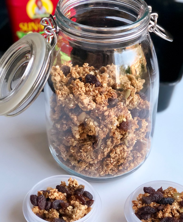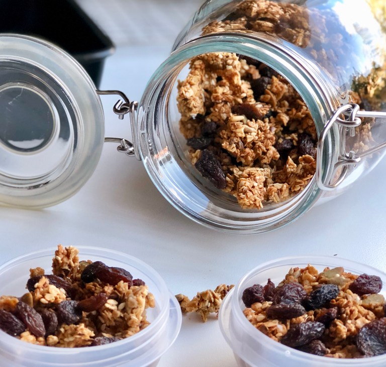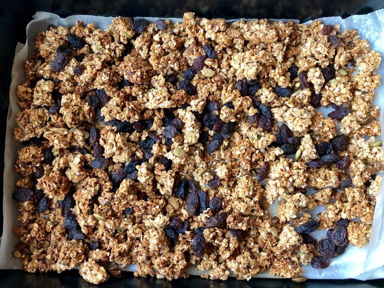 Stek granolaen midt i ovnen på 150 grader varmluft i ca. 40 minutter.
