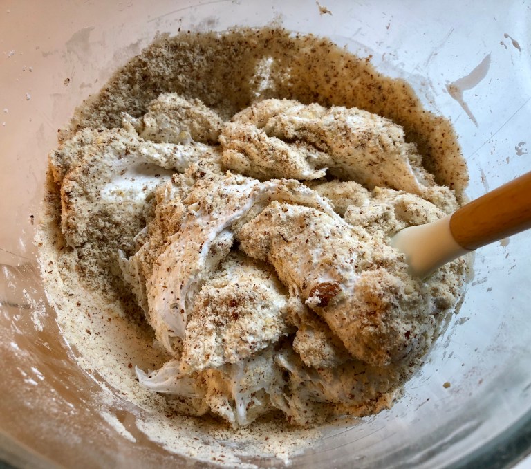 Mal mandlene fint i en foodprosessor og bland inn bakepulveret.