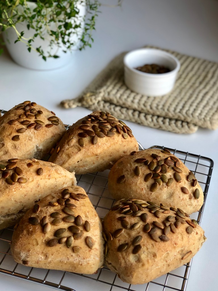 Ta brettet ut av ovnen og avkjøl rundstykkene på rist.