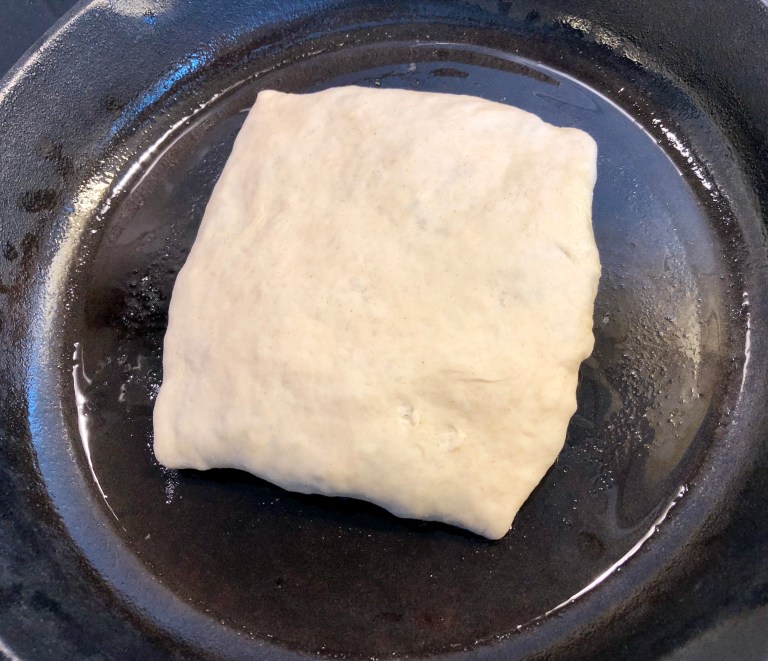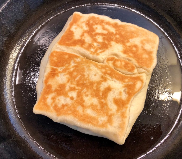 med diverse og stekt i en jernpanne. Deigen her er tilsatt yoghurt, olje,