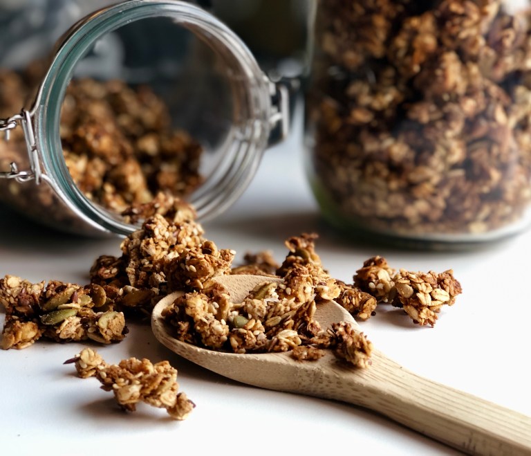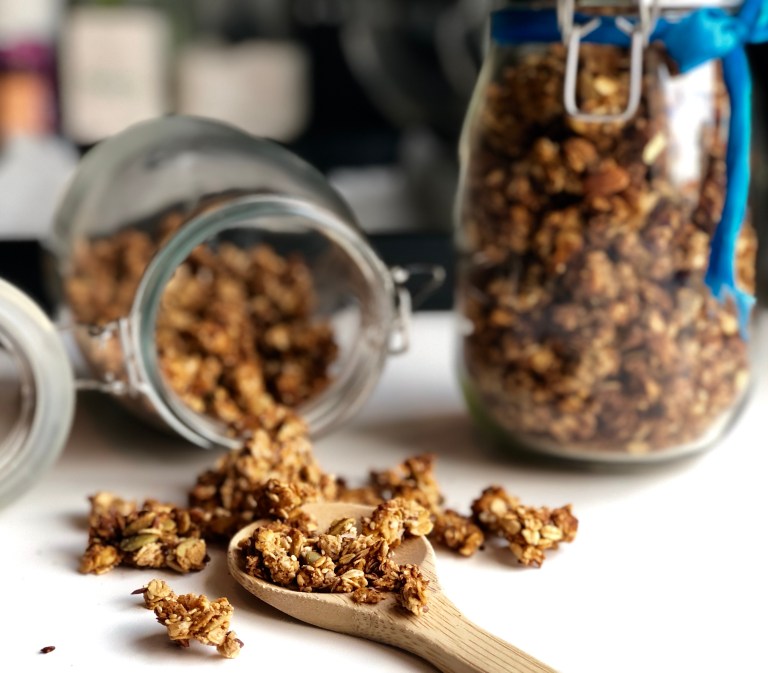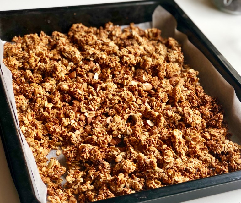 Stek granolaen midt i ovnen på 150 grader varmluft i ca. 40 minutter.
