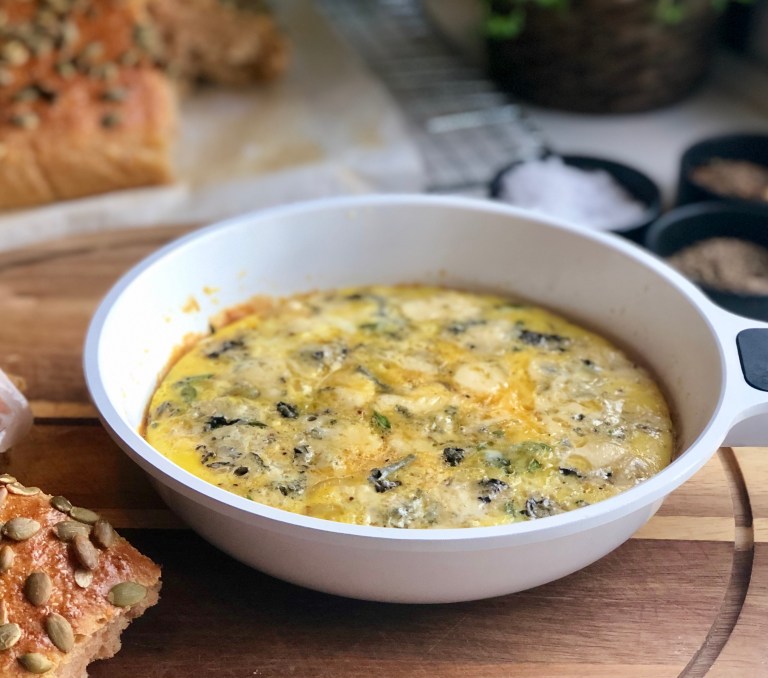 Legg på lokk og la det stå til omeletten har stivnet på toppen.