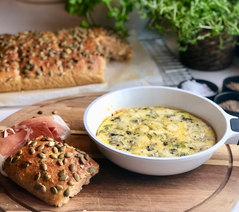 Dette er en saftig, kraftig og smakfull omelett for deg som er glad i blåmuggost.