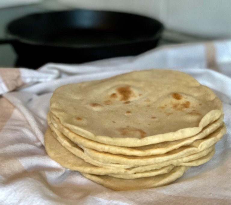 Hjemmelagde litt mindre tortillas laget med speltmel og surdeig.