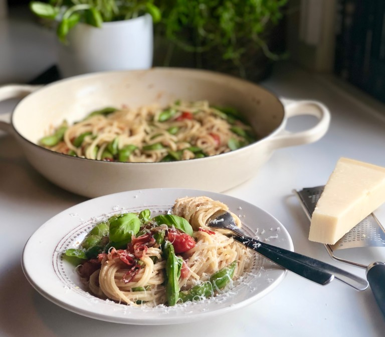 Dette er en spicy og frisk sommerlig pastarett som er rask å lage.