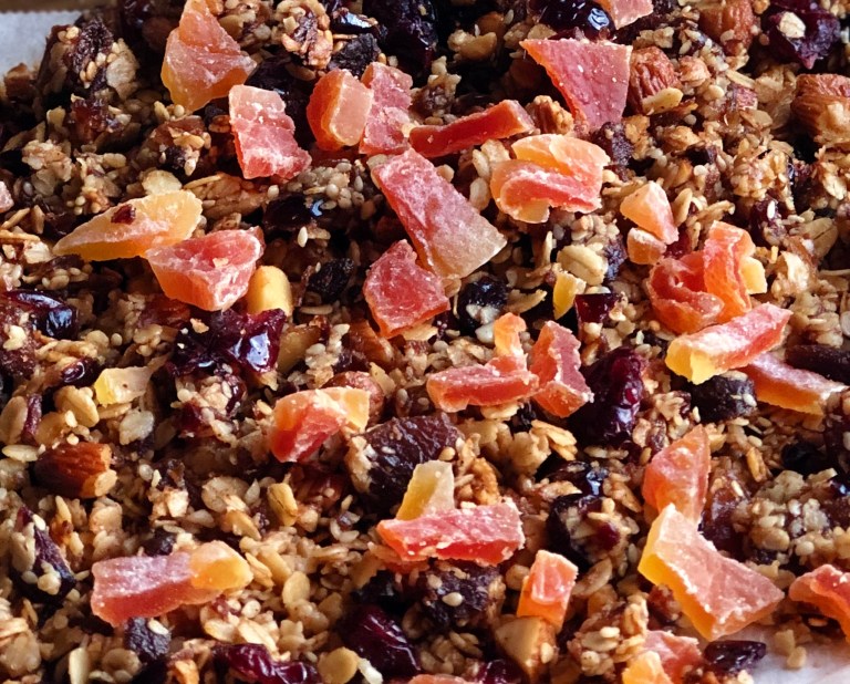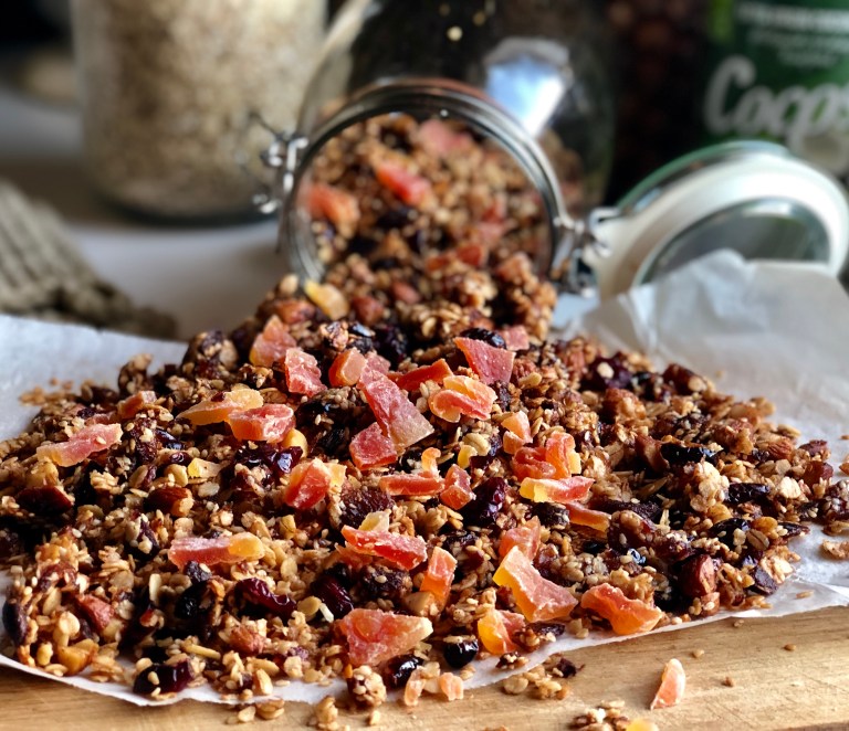 Stek granolaen midt i ovnen på 150 grader varmluft i ca. 30 minutter.